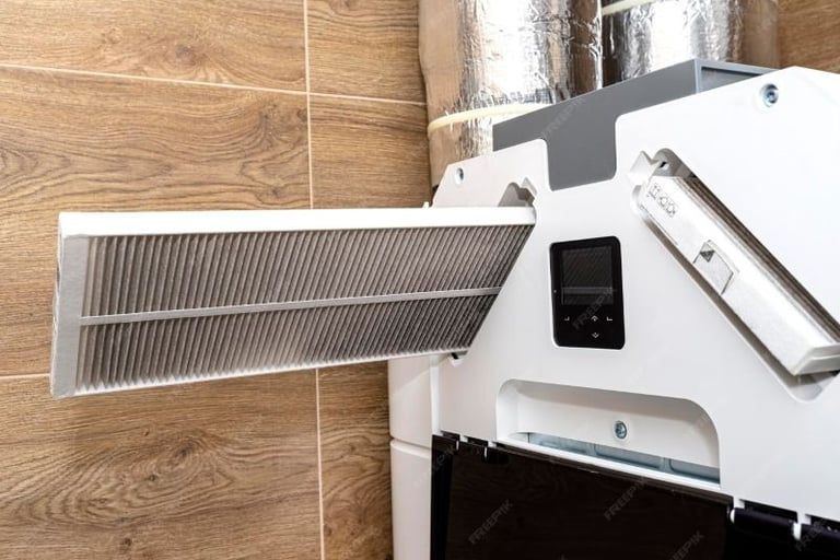Naudoti aukštos klasės filtrus (F7/F9), jei namas arti kelio ar miesto.